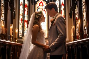 挙式をしなくても結婚式らしさに包まれた空間で撮影できます。神聖でロマンチックな雰囲気になりますね。なかには、指輪の交換など挙式を行わないと撮影できないシーンで撮ってくれる結婚式場もあります。