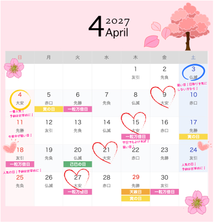 ・4月26日(日):赤口 - 2027年4月の狙い目日取り「吉日ではない休日」