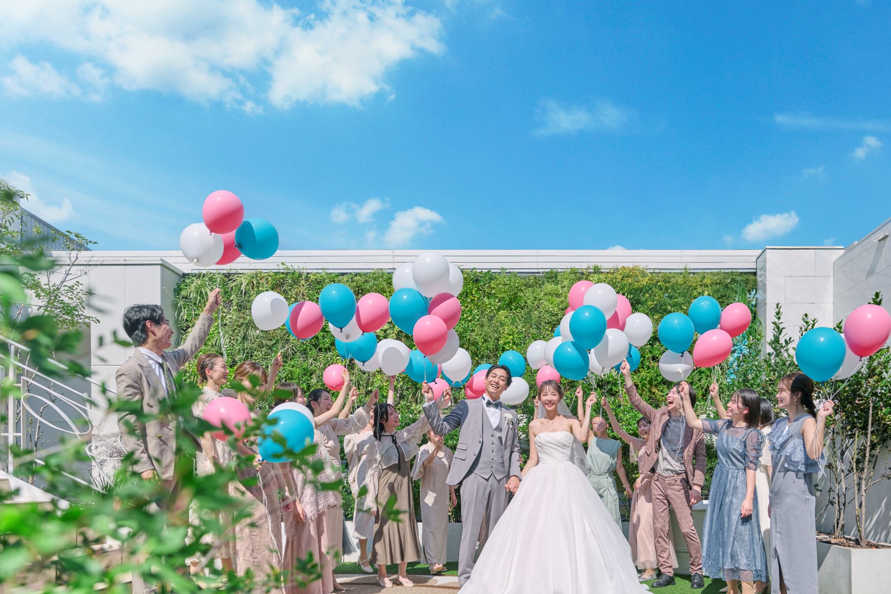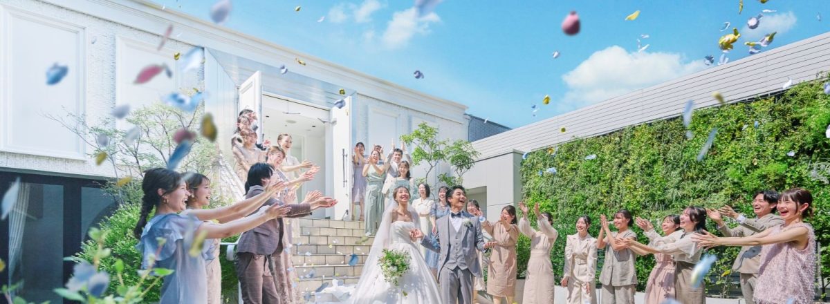 屋上にある開放的なガーデンでのフラワーシャワーは横浜にいることを忘れてしまいます。