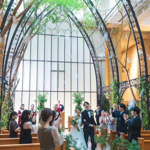 挙式は、教会式、人前式、神前式の3スタイルからおふたが叶えたいスタイルで行えます。
